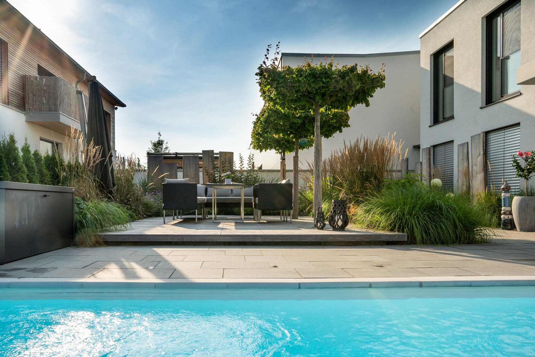 Poolgarten mit Holzdeck