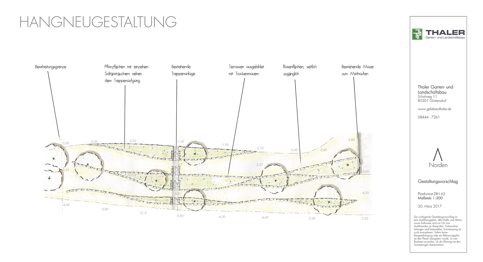 Materialien: Natursteinmauern aus Jura, Bepflanzung mit verschiedenen Gehölzen und pflegeleichten Stauden