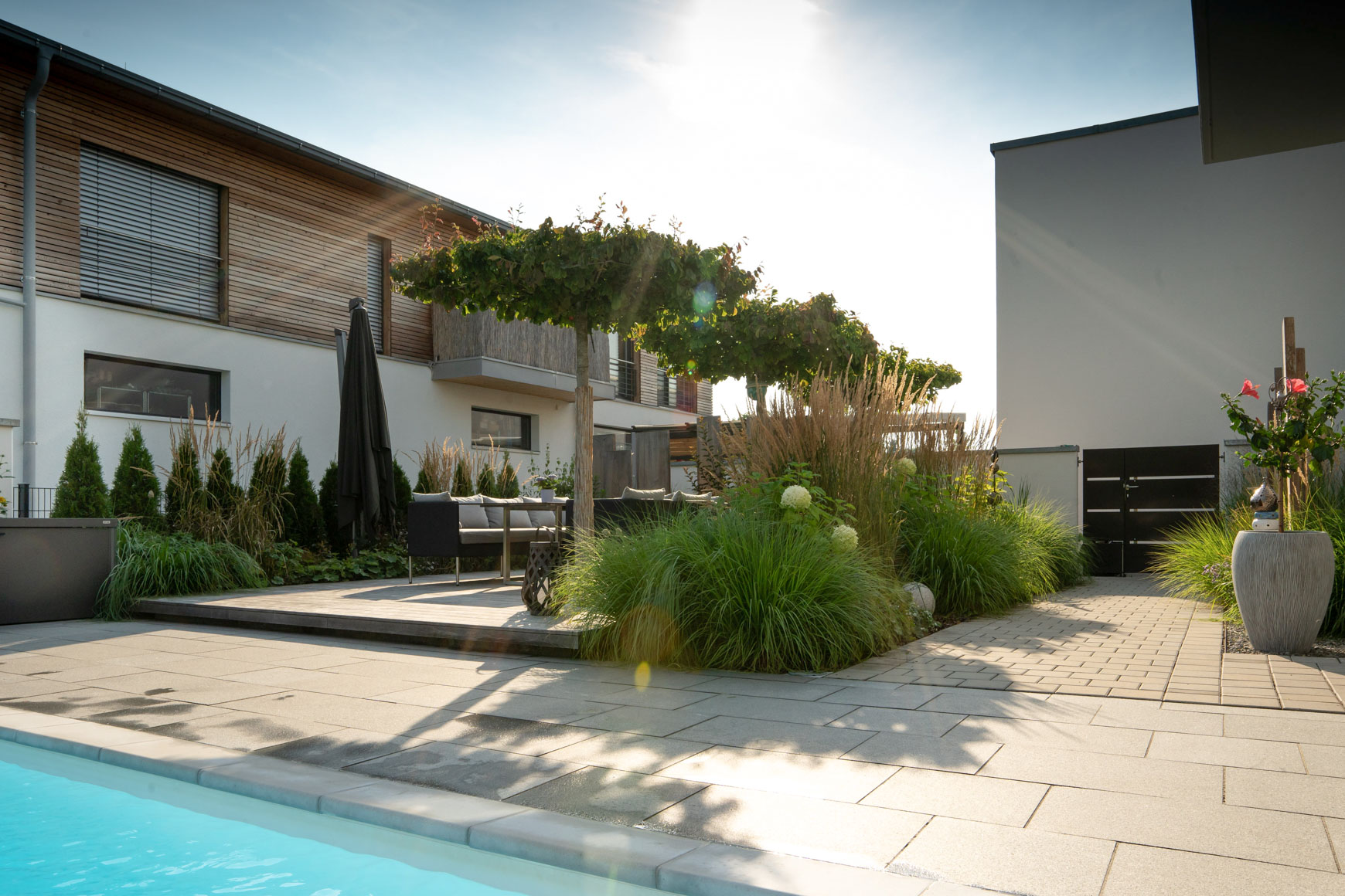 Poolgarten mit Holzdeck